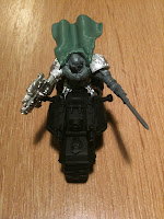 I used some Iron Hands metal legs adapted to the bike. The cloak was made out of green stuff using this excellent tutorial I found here (if the images don't show scroll to the end of the post to see this amazing paintbrush fold technique).